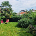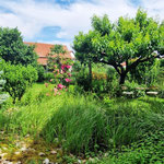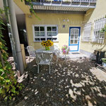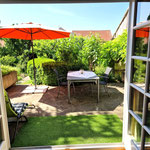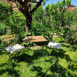 Die Terrasse und der Blumengarten mit Sitzplätzen & Liegen stehen Ihnen allein zur Verfügung.